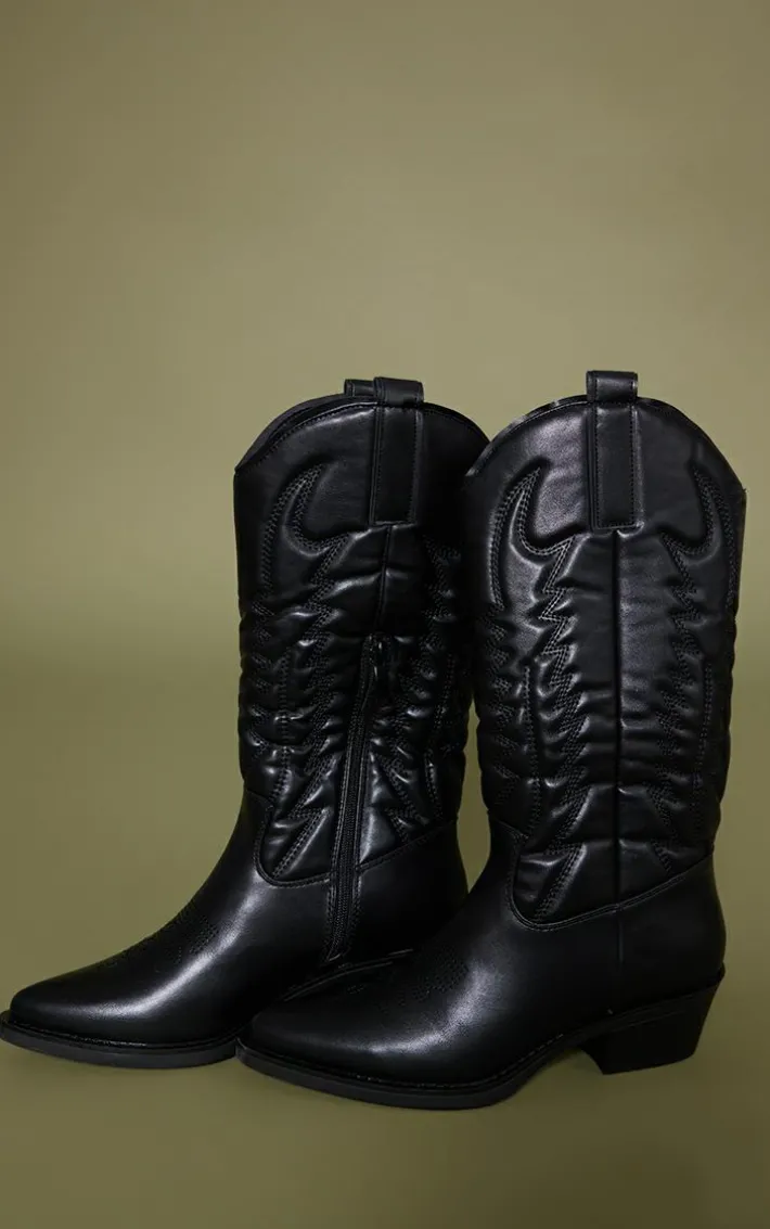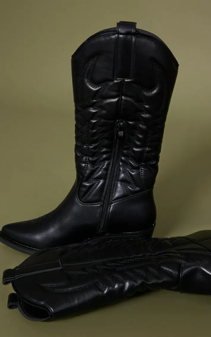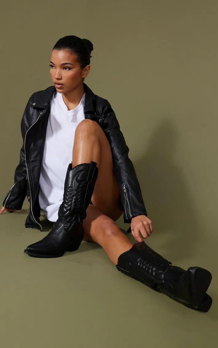 Add a little attitude to your new season wardrobe with these boots. Featuring a black faux leather material with a zip fastening and a knee high design, how could you resist?