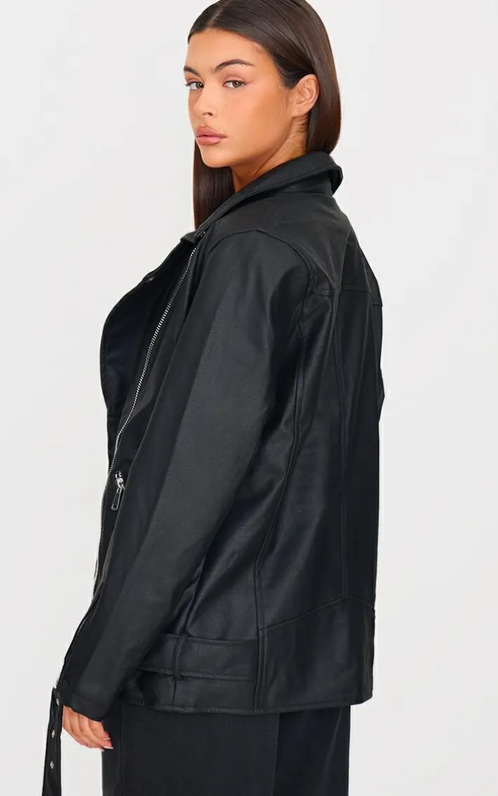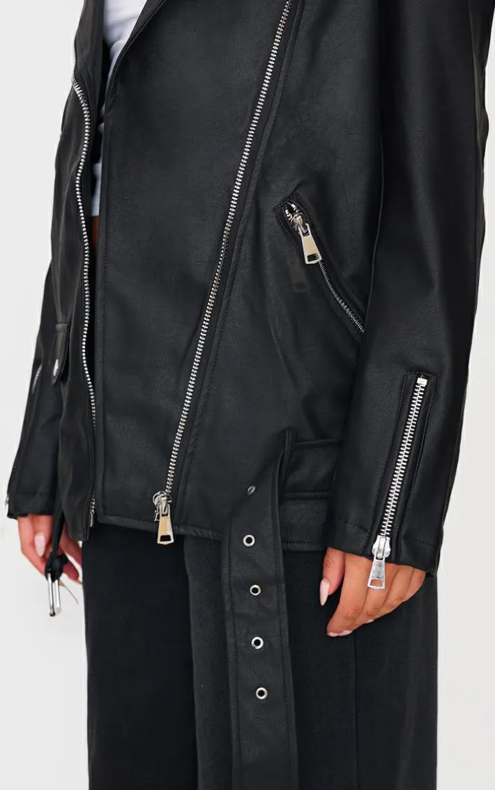 Give your look a fierce edge with this must-have black faux leather longline belted Biker jacket. Brought to you in a black faux leather material with zip detail and an oversized fit, what’s not to love? Style with a white tee, pants and loafers for an instant chic look everyone will want.