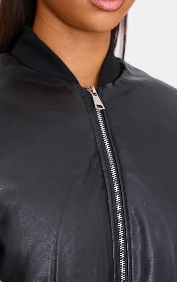 Your wardrobe is calling out for this black faux leather oversized bomber jacket for your new season look. Brought to you in a black faux leather material with an oversized fit, how could you resist this bomber jacket? Team with your outfit of the day and a pair of sneakers for a weekend-worthy finish we just can’t get enough of.