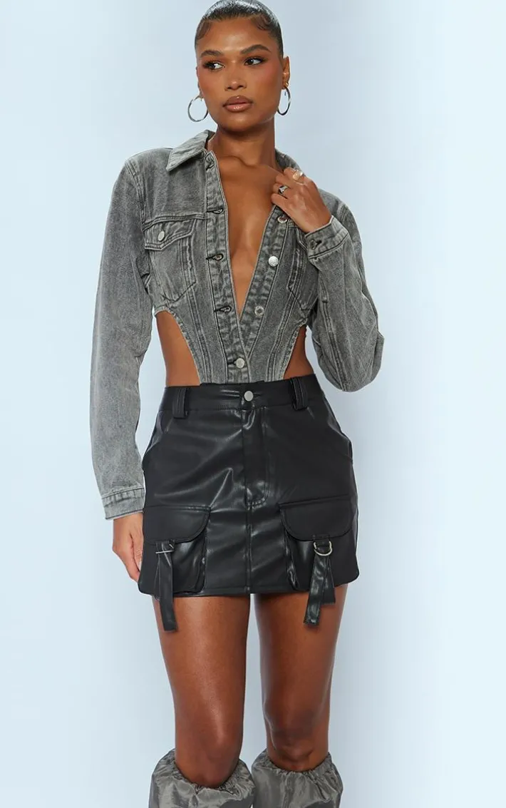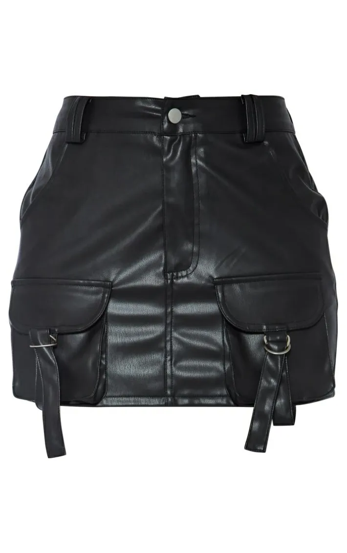 This black faux leather pocket detail cargo mini skirt is at the top of our new season hit list. Brought to you in a black hue faux leather material with an on-trend cargo design, pocket detailing and a mini fit, how can you not be obsessed. Perfect for dressing up or down, you will be reaching for this faux leather skirt again and again. Style with a denim bodysuit and knee high heeled boots for a weekend-worthy look that will really make a statement.