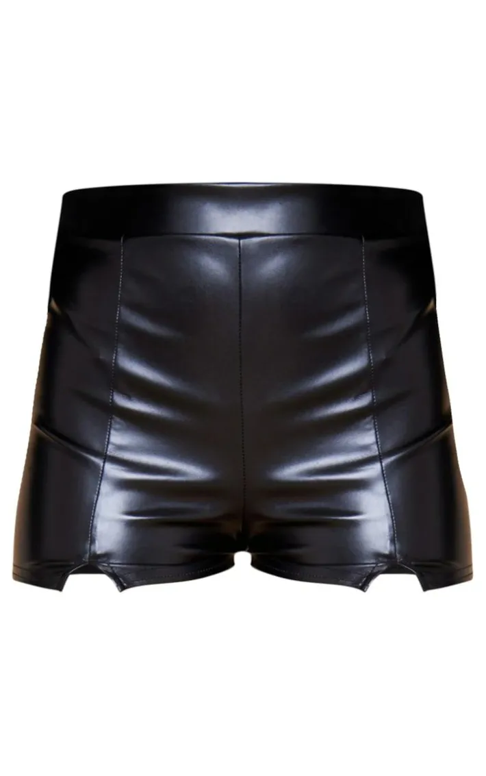 These shorts are perfect for the upcoming season. Featuring a black faux leather material with split hems and seam detailing, we are in love. Wear with a white tee and a cropped blazer for a look that will get you noticed.