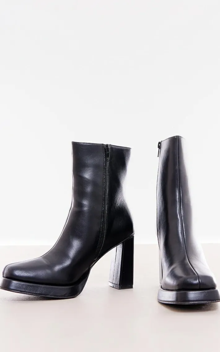 These black faux leather square toe block heeled ankle boots are the perfect versatile piece in your new season wardrobe. Brought to you in a black faux leather material with a square toe design, we are seriously obsessed. Team these heeled ankle boots with some wide leg jeans a white tee to finish off the look everyone is talking about.