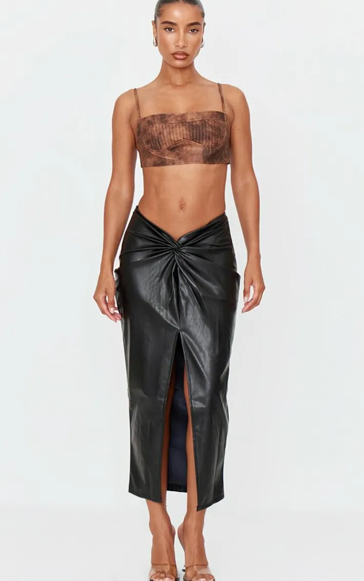 Elevate your weekend wardrobe with this next-level skirt. Featuring a black faux leather material with a twist front detail and split design, we’re obsessed. Style with a crop top and heels for a seriously chic finish.