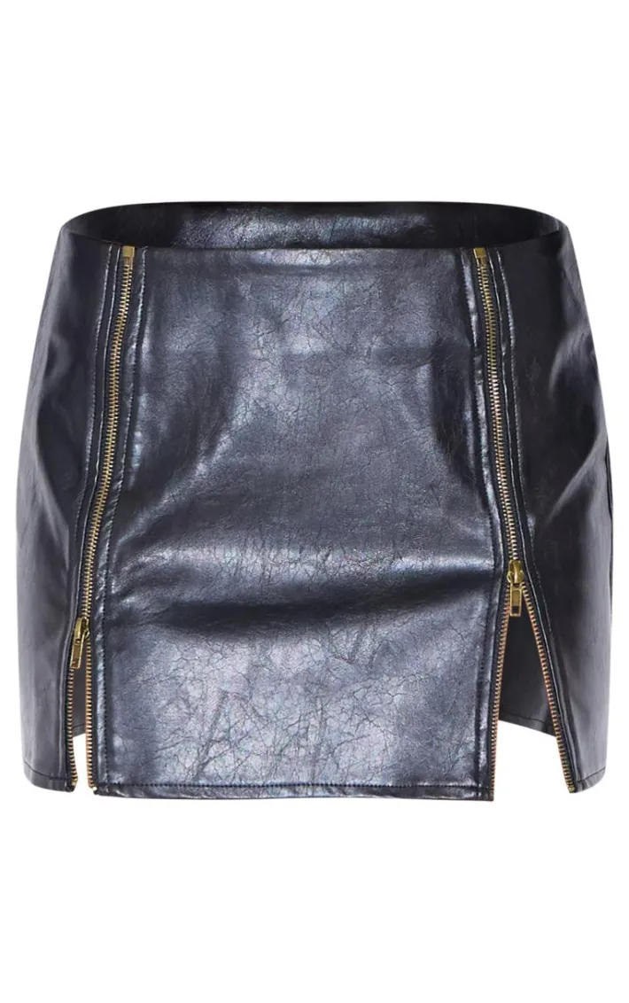 Elevate your weekend staples with this black faux leather zip seam detail mini skirt. With its classic black shade, faux leather material and zip seam detail, this look won’t go unnoticed. Style with the matching jacket, a pair of black heels and gold accessories for a statement finish.