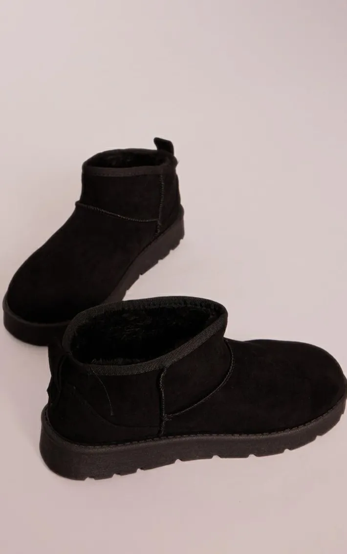 Every needs a pair of these black faux suede cleated mini ankle boots in their collection this season. Perfect for nailing all the A/W trends and keeping you cosy, these boots have everything and more. Brought to you in a black faux suede material with a mini ankle design, it’s a yes from us.