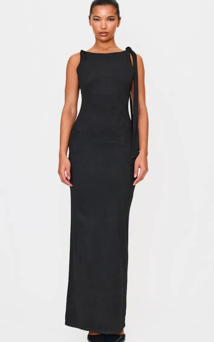 Deciding what to wear just got easier with this black faux suede knot drape maxi dress. Brought to you in a black hue faux suede material with a knot drape detail, this maxi dress is all the new you need. Style with slip on heels and gold accessories for a look like no other.