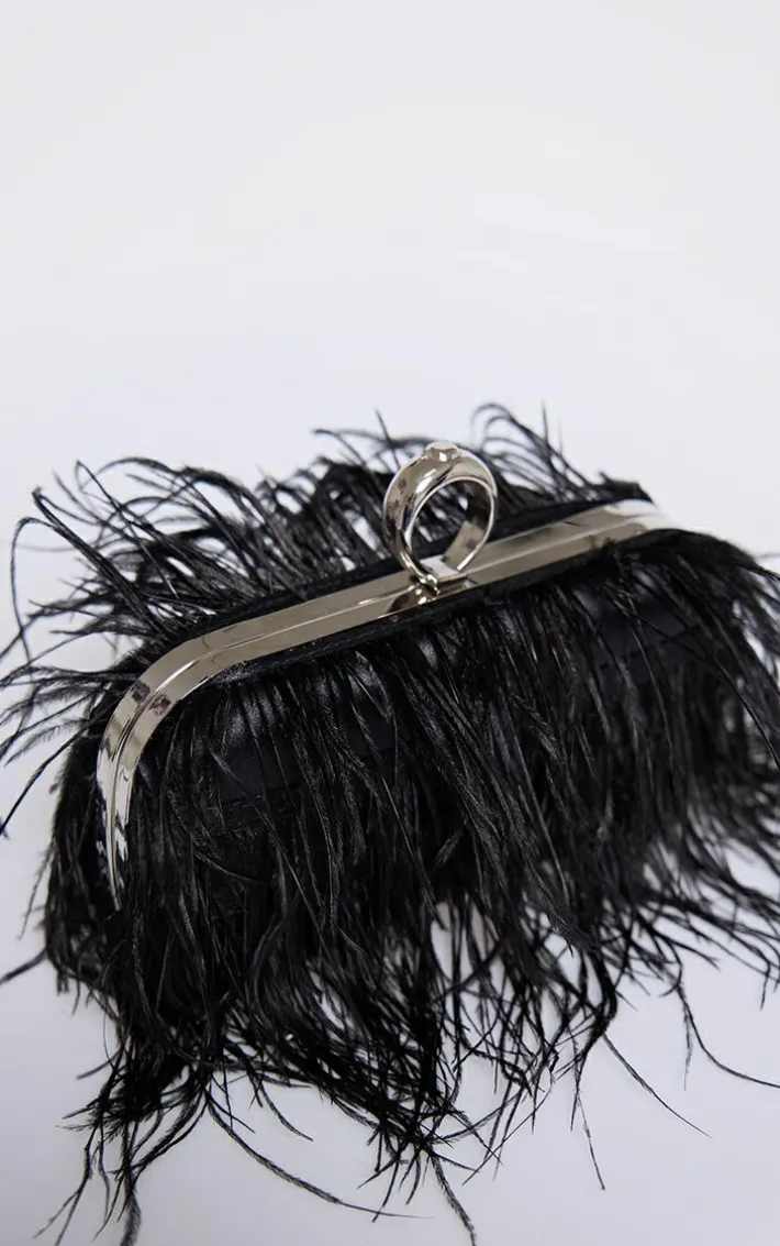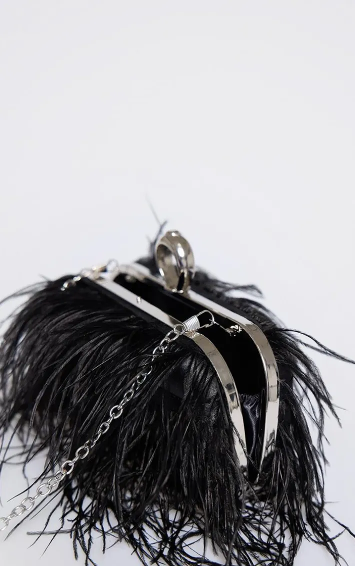 Take your look to a whole new level with this unreal black feather clutch, you’re sure to be accessorising in style. With a black feather material and a chain strap option, you won’t be able to resist this clutch. Pair it with your fave weekend fit for a flawless finish.