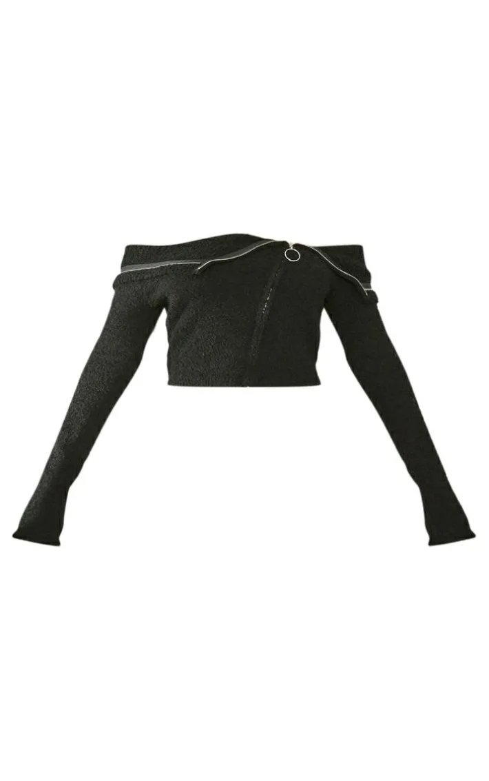 Level up your weekend wardrobe with this black fluffy knit fold-over zipped crop jacket. Brought to you in a black fluffy knit material with a fold-over neckline and a zip fastening, what more could you ask for? Looking to add some fresh vibes to your weekend ‘fit and trying something a little different? Then this crop jacket is perfect. Team with the matching mini skirt, clear heels and a metallic shoulder bag for a look that won’t go unnoticed.