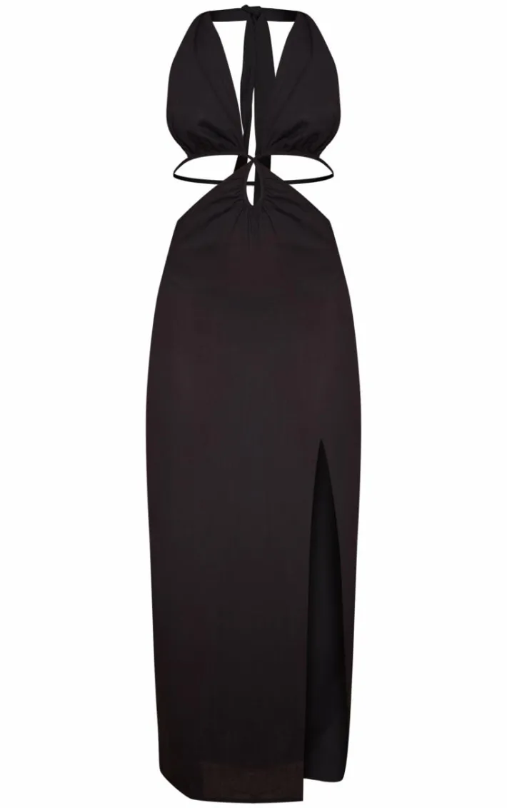 Look the best dressed for any occasion with this black halterneck backless maxi dress. Brought to you in a black material with a halterneck design, you are sure to feel fiercley feminine no matter what. Its backless detail and maxi length are sure to make a statement. Team with a pair of slip on sandals and your fave accessories for a look that will turn heads for all the right reasons.