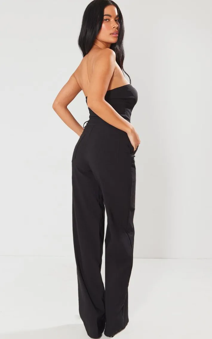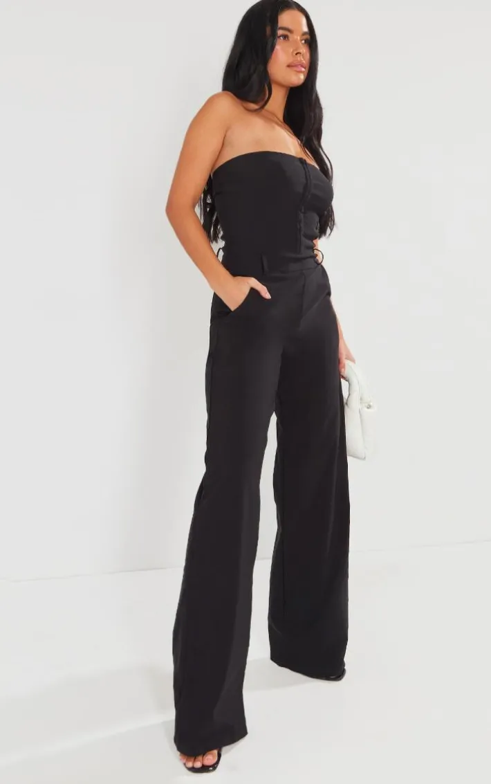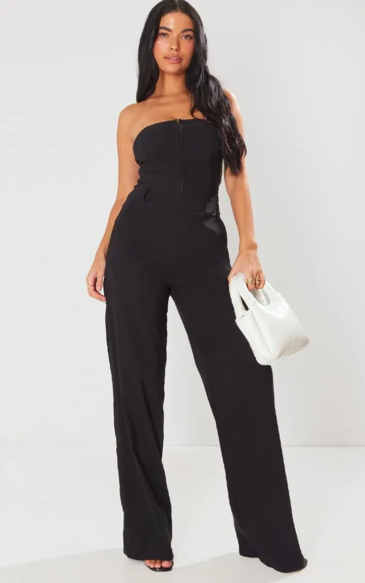 Get ready for all your weekend plans with this black hook and eye stretch woven jumpsuit, you’re sure to be stealing all the stares. This jumpsuit is made using a black stretch woven material with a hook and eye design in a figure-flattering fit, you won’t be able to say no to this unreal piece. Pair with clear heels and your staple accessories for a look everyone will want.