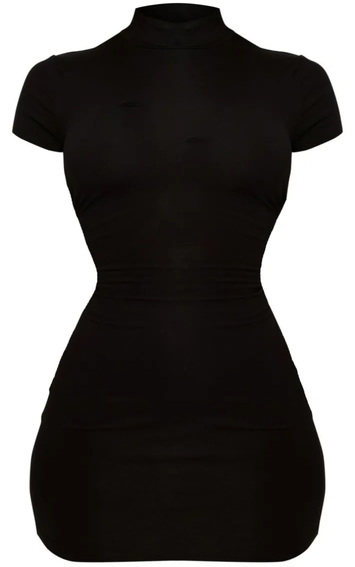 Get ready to have all eyes on you all season long with this dress. Featuring a black jersey material with a high neck, capped sleeves and a bodycon fit, we are in love. Wear with gold accessories and chunky boots to seal the deal.