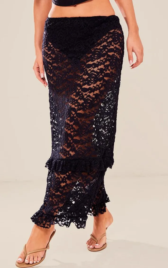 Go for all the luxe vibes this season with this black lace frill trim midi skirt, it is perfect for your weekend plans and beyond. This skirt features a black lace material with frill trim detailing and a midi length, how could you say no? Just add your fave top, heels and simple accessories for a look we just can’t get enough of.