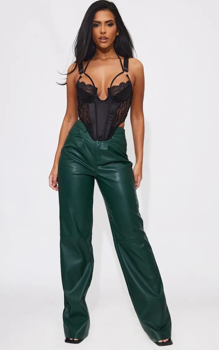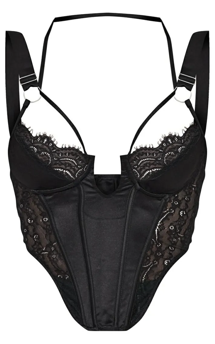Add some fiercely feminine vibes to your weekend wardrobe with this top. Featuring a black satin material with lace detailing and a thick strap design. Style with faux leather bottoms and your highest heels for a night.
