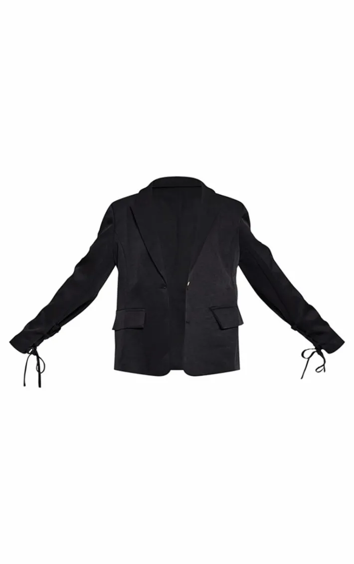 Add an instantly touch of chic to any look with this black lace up sleeve blazer. Brought to you inn a black hue material with a lace up sleeve design and a button fastening, what more could you need? Wear this black blazer with shorts, a white tee and ballet flats for a look that is sure to earn you some serious style points.