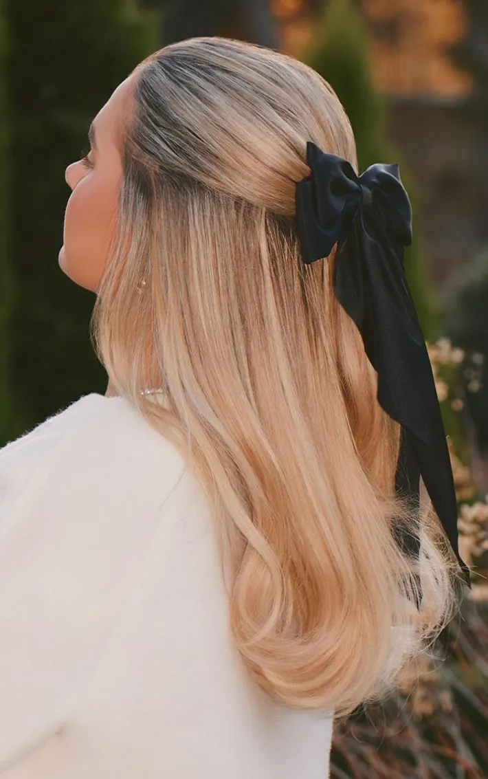 Tap into your feminine side with this black large satin bow hair clip. Seriously glam and super dreamy this hair clip is the perfect finishing touch to your look. With a black satin material and a large bow design, what’s not to love?