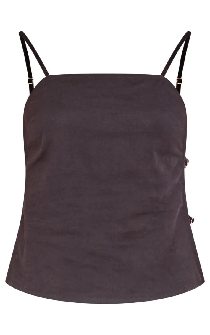 Give your new season wardrobe the upgrade it deserves with this black linen look velvet strap detail cami top. Brought to you in a black hue linen look material with a velvet strap design and a cami style, how can you resist? Pair this cami top with the matching shorts, sandals and simple gold accessories for an effortlessly chic look like no other.