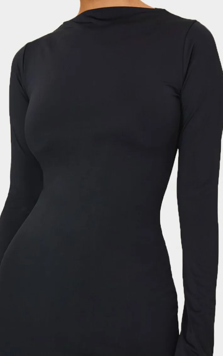 Keep it chic with this black matte sculpt boat neck long sleeve mini dress. Brought to you in a black matte sculpt material witha boat neck design and a long sleeve fit, we are seriously obsessing over this mini dress. Team with a pair of heels and minimal accessories for a fool proof finish.