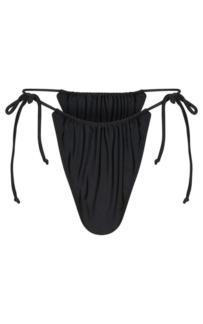 These bikini bottoms are at the top of our swimwear hitlist. Featuring a black fabric with ruching detail and tie sides, we’re obsessed. Team with a string bikini top and your poolside essentials for a look that will have heads turning for all the right reasons.