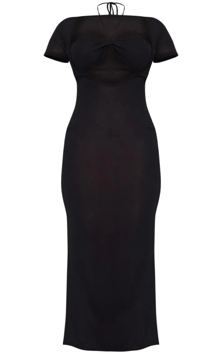 Get your glam on with this black onion skin sheer cup detail short sleeve maxi dress. Made from a black onion skin sheer material with cup detailing, short sleeves and a maxi length, you’re sure to have all eyes on you. When the weekend calls so does this maxi dress. So what are you waiting for? Shop the look and opt for high heels and accessories for a weekend worthy combo.