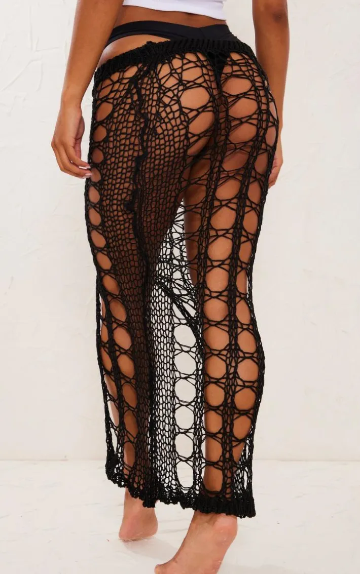 Add all the luxe vibes to your wardrobe with this black open knit crochet split maxi skirt. Made from a black open knit crochet material with a split hem, you are sure to nail all the major trends this season. This maxi skirt is the perfect piece to add to your wardrobe and you are sure to gain all the compliments. Pair with your fave bikini set, sandals and gold accessories for a summer-ready finish.