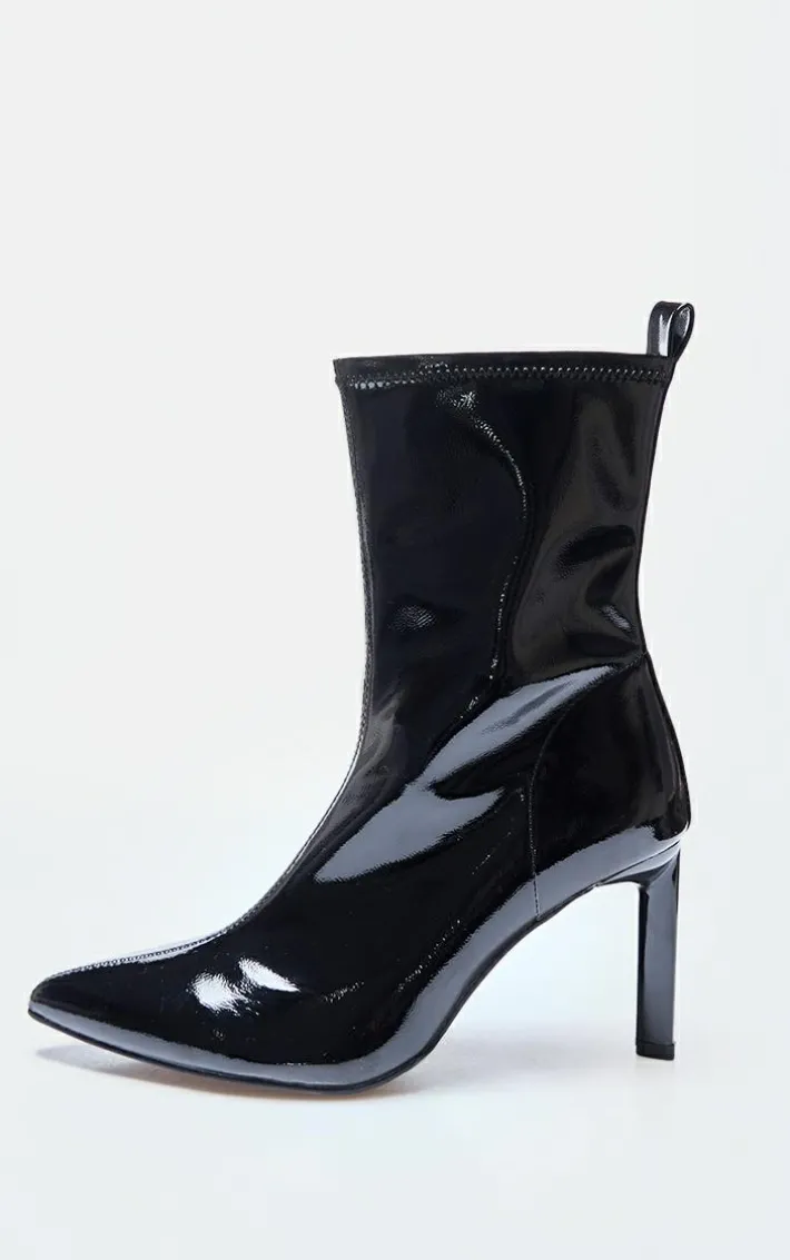 Bring a chic finish to your look with these black patent PU high stiletto heeled sock boots. Brought to you in a black patent PU material with a high stiletto heeled design, you really can’t go wrong. Team with your outfit of the day to take your look from day to night instantly.