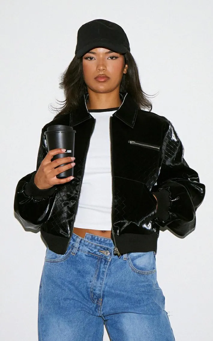 Take any look to new heights with this black patterned faux leather jacket. Brought to you in a black faux leather material with a patterned design, you are sure to turn heads no matter what the occasion. Whether you are off-duty, or have weekend plans , this unreal jacket is all you need to stand out from the rest. Team with a pair of your go-to jeans and accessories of your choice to finish the look everyone is loving.