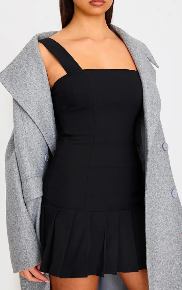 Keep it chic with this black pleated shift dress. Brought to you in a neutral black hue, with a pleated design and flattering shift style, this dress won’t go unnoticed. Team with simple accessories, a pair of seasonal boots and a maxi coat for a look like no other.