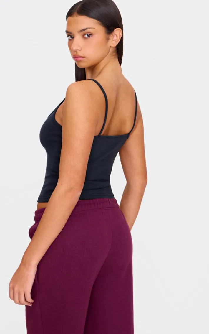 Your laid back looks have just been elevated with this black premium soft touch V neck strappy cami top. Made from a black hue soft touch material with a V neckline and strappy design, this cami top is a must have. Team with burgundy bottoms and simple accessories for a comfy finish perfect for those days in.