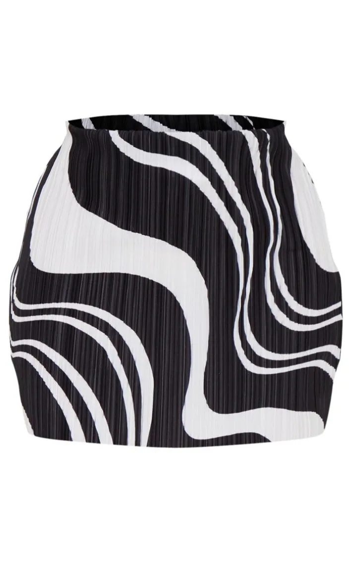 This mini skirt is perfect for those weekend plans. Featuring a black printed plisse material in a mini length and a flattering fit, what’s not to love? Style this with a corset, tie-up heels and a blazer to complete the look.