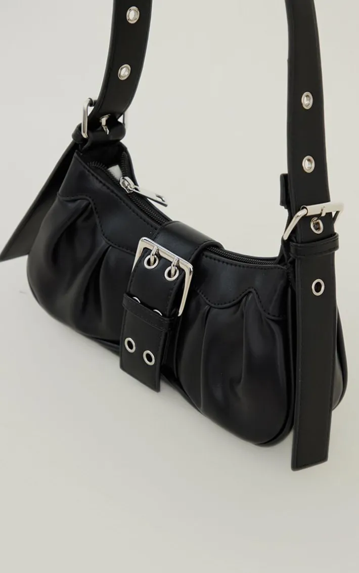 Add a little edge to your outfit of the day with this bag. Featuring a black material with a buckle detail and a zip fastening, what’s not to love? Just add to your fave new season fit for an instant chic finish.