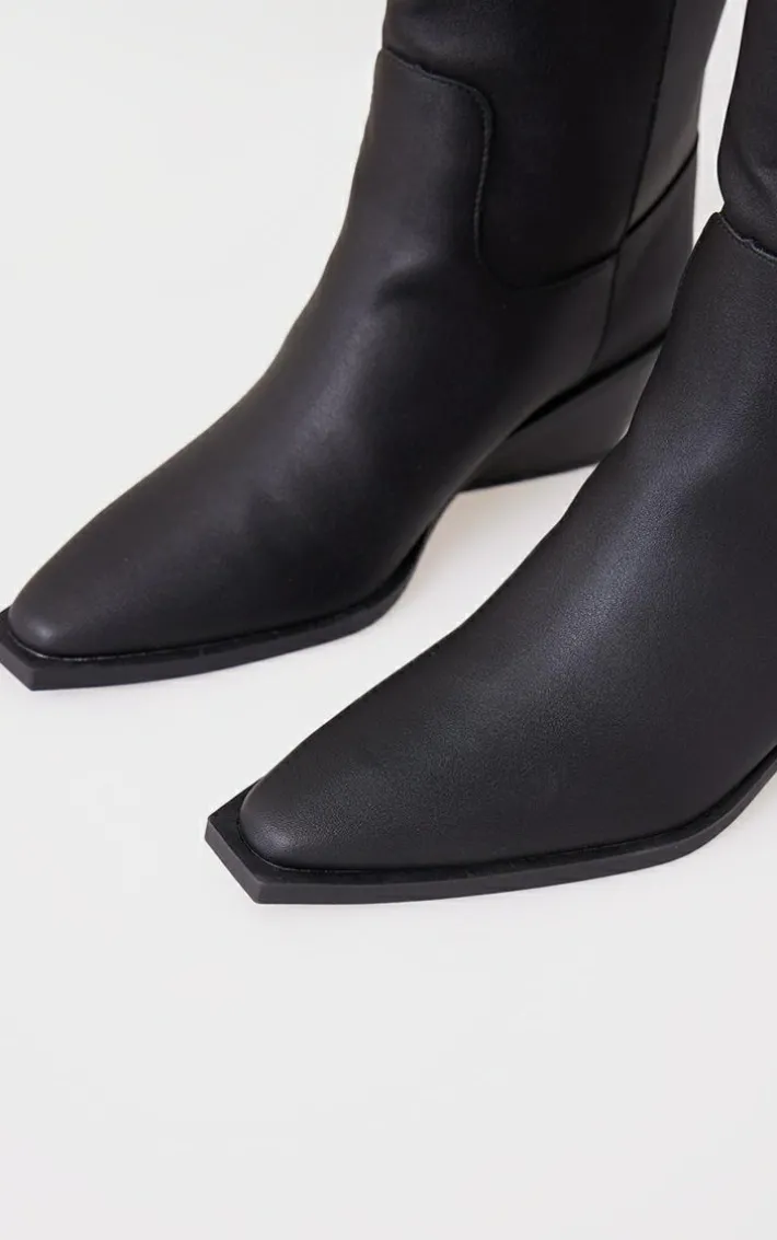 Keep it edgy with these black PU point toe black heel western boots. Brought to you in a black PU material with a point toe design and a western heel detail that is sure to have you setting major trends no matter what. These unreal boots pair perfectly with any outfit of the day, it’s a yes from us.
