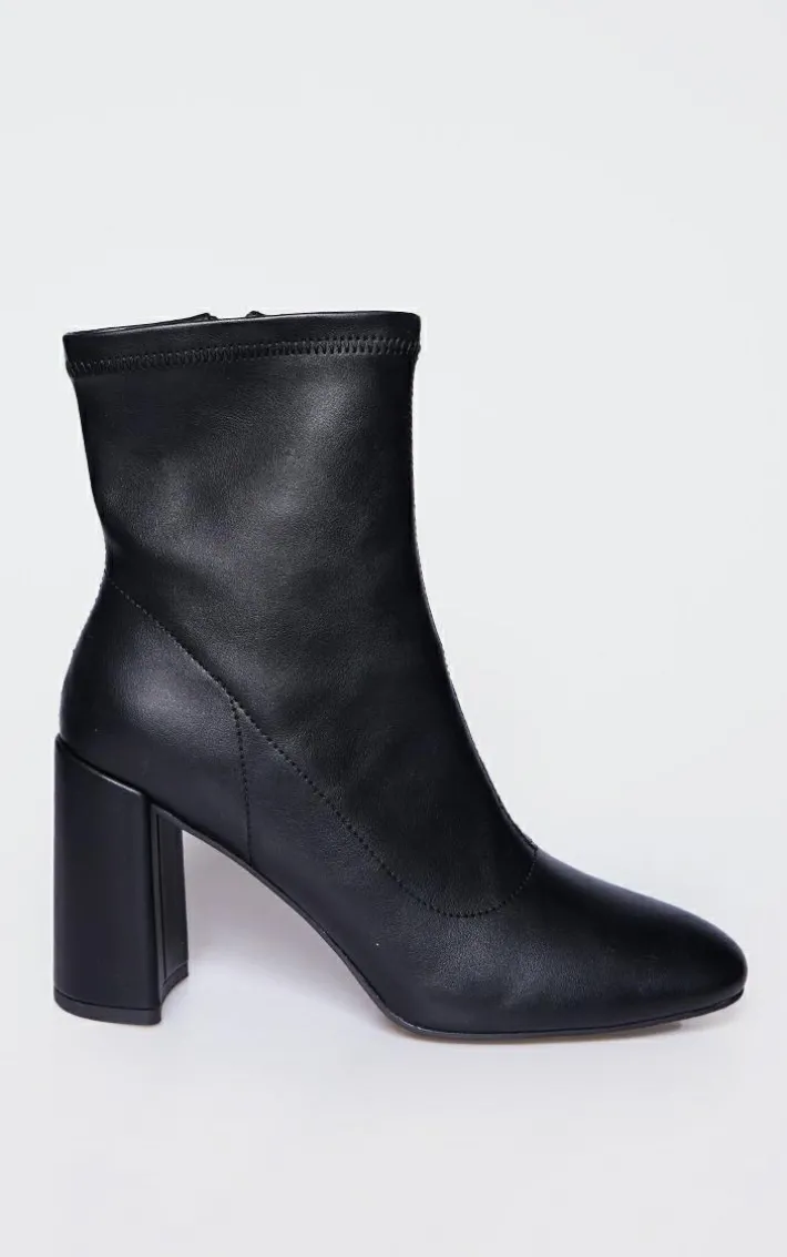 Your new season wardrobe wouldn’t be complete without these black PU round toe heeled ankle sock boots, you’re sure to be nailing major trends. With a black PU material, a round toe design and a block heel, you’ll be reaching for these sock boots again and again. Team it with your fave outfit of the day to take your look the extra mile.