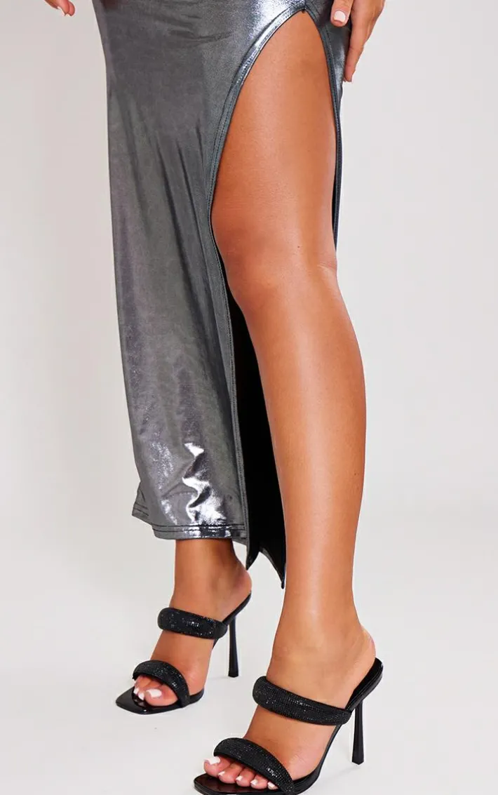 Step out in style and be ready to turn heads with these black metallic square toe diamante padded strap heeled sandals. These sandals are brought to you in a black metallic hue with diamante detailing, a padded strap and diamante detailing, what’s not to love? These sandals are everything and more we’re loving paired with your weekend look for a glam finish.