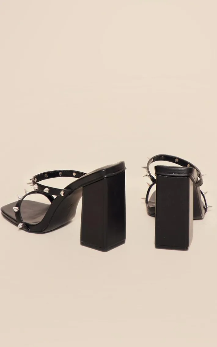 Say hello to your newest weekend go-to with these black PU square toe studded double strap heeled sandals. Made from a black hue material with studded detail and a square toe design, how could you say no? These sandals are the luxe finishing touch you have been looking for and we know you won’t want to miss out on these.