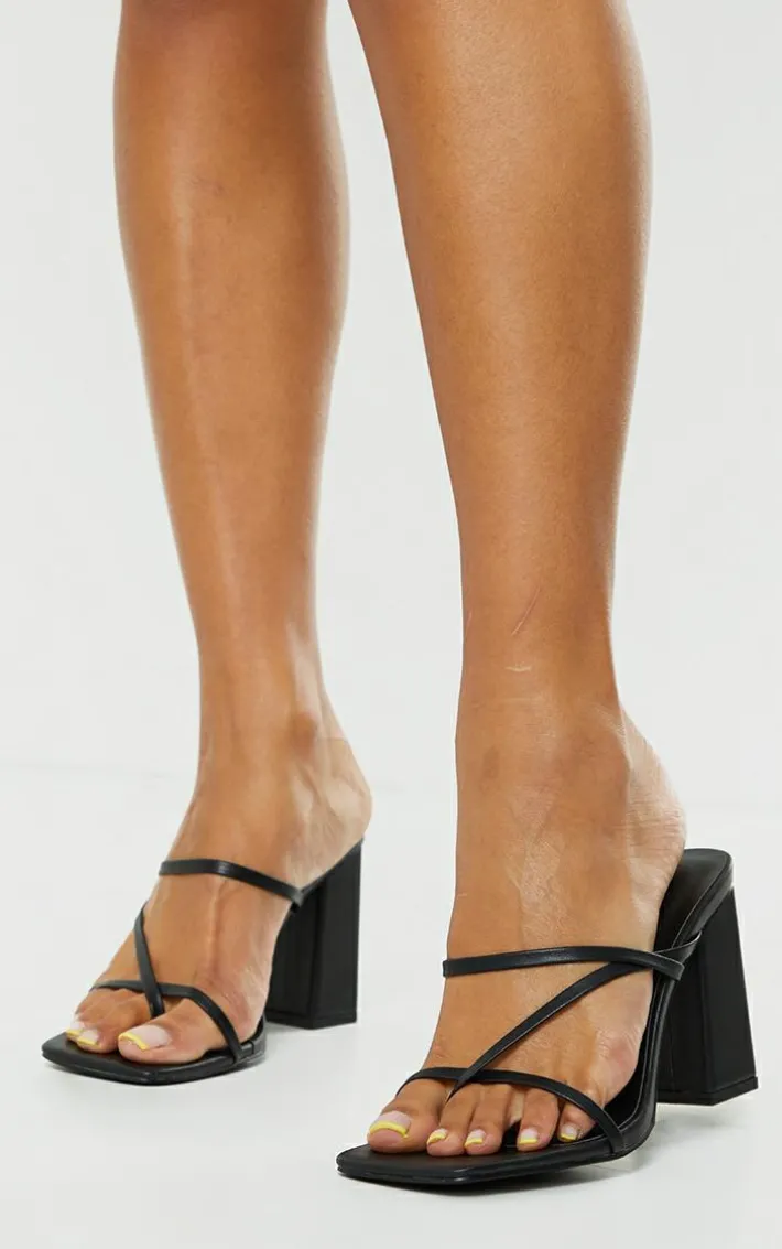Finish off your weekend look with these heeled mules. Featuring a black PU material with toe loop detail and block heels, they’re an essential in your shoe-drobe.