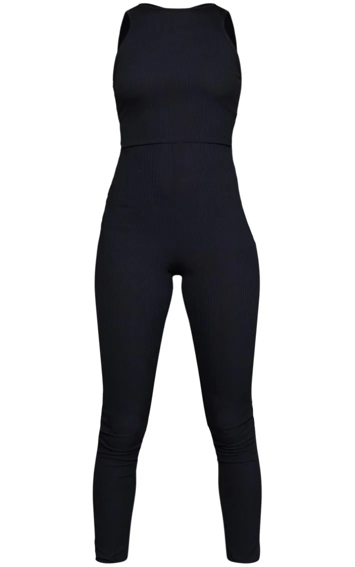 Upgrade your new season wardrobe essentials with this jumpsuit. Featuring a black ribbed material with a racer design and a figure-worshipping fit. Wear with a trench coat and fresh kicks for a chic, blogger-worthy vibe.