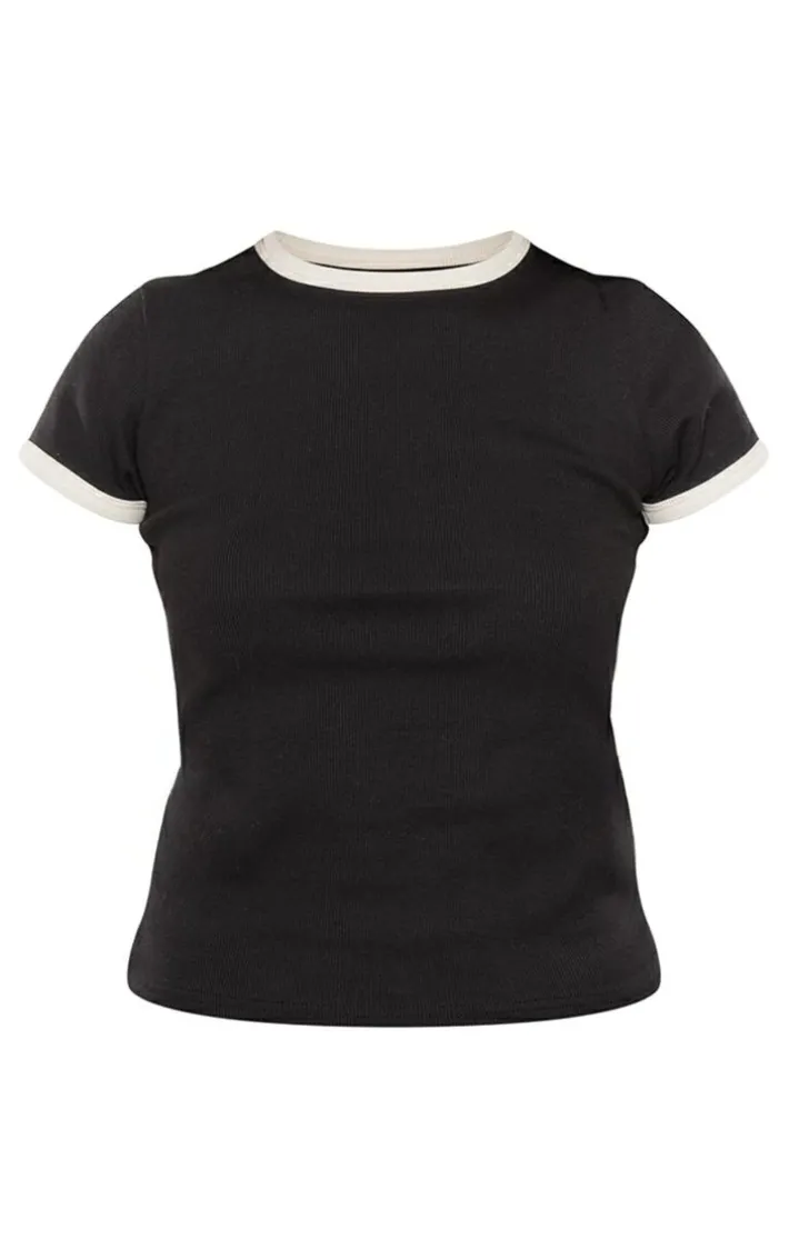 This black rib contrast binding fitted t shirt is here to solve all your styling dilemmas. It is made using a black ribbed material with a contrasting binding design and a comfy fit, what more could you want? Pair this t shirt with cargo Pants, sneakers and a tote bag for a look that is totally on trend.
