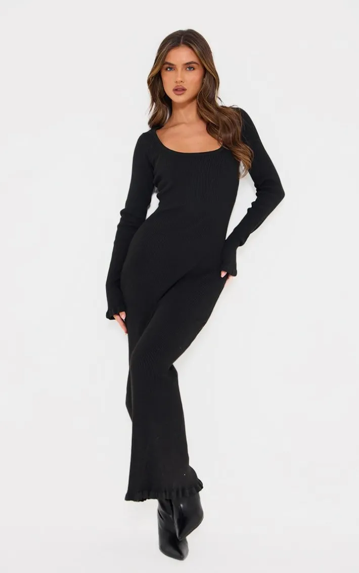 Add this black rib knit piquet hem maxi dress to your bag for a look that won’t go unnoticed. Brought to you in a classic and versatile black shade, with a rib knitmaterial for ultimate comfort and a piquet hem detail, you’ll be reaching for this to elevate those day-to-day looks. Pair with some black boots and gold accessories to dress up or down.