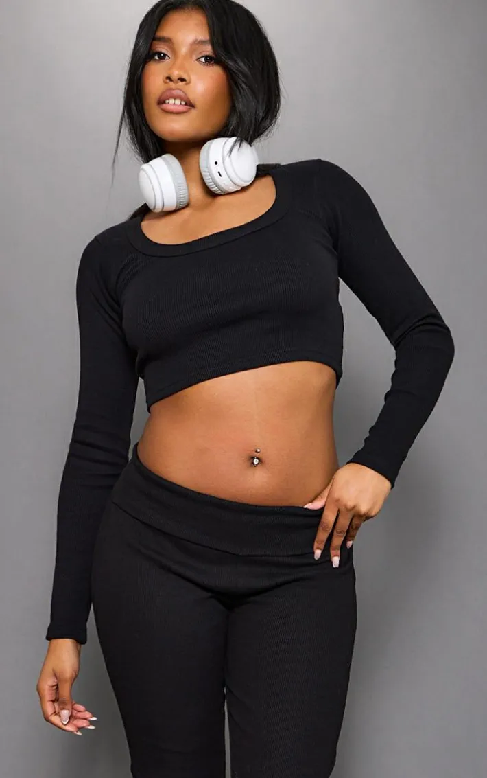 Basics are essential for everyone’s wardrobe and this black rib scoop neck long-sleeve crop top is a must-have for yours. Perfect for taking the stress out of styling and giving you the ultimate base layer for any outfit of the day. With a black rib material, a scoop neckline, and long sleeves, how could you say no? Team with the matching comfy bottoms, comfy boots and a trench coat for a blogger-worthy finish.