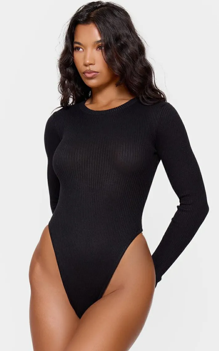 Your new season wardrobe would not be complete without this bodysuit. Featuring a black ribbed material with long sleeves, and a flattering fit, how could you resist? Team with a white mini skirt and minimal accessories for a chic finish.