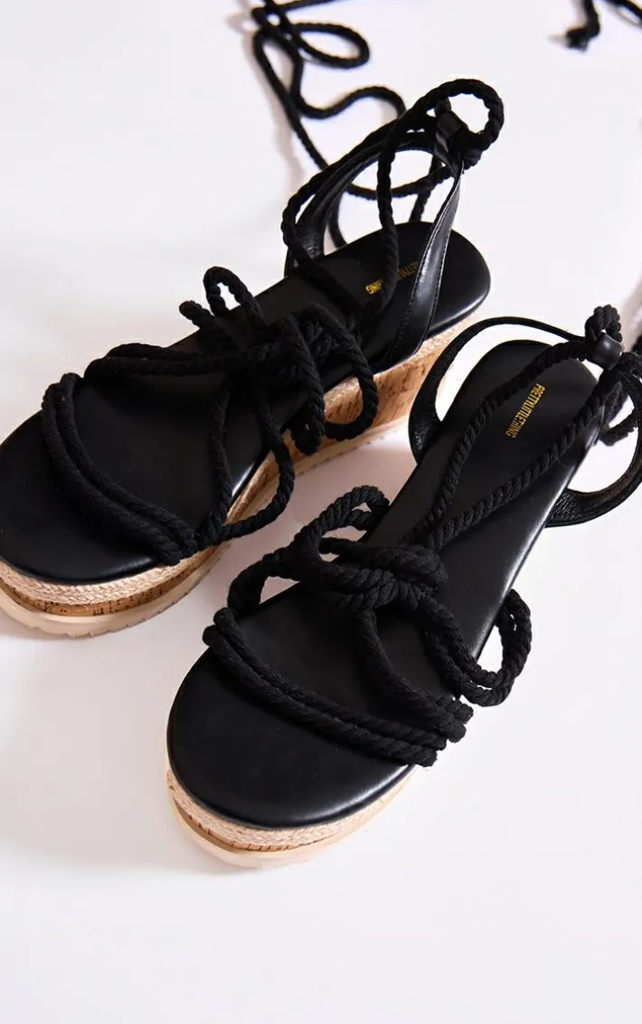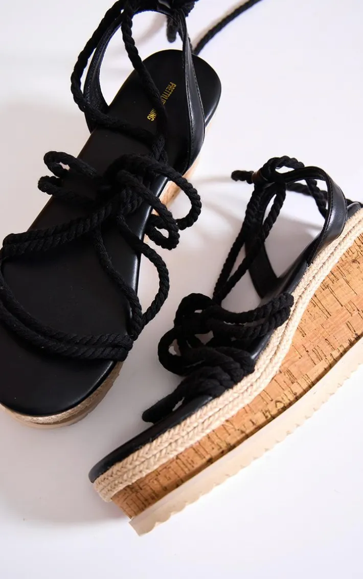 Step into the new season in style with these black rope round toe espadrille wedge heeled sandals. Brought to you in a black hue rope material with a round toe design and a heeled espadrille wedge, how can you not be obsessed? Style these black heeled sandals with any look for a chic finishing touch.