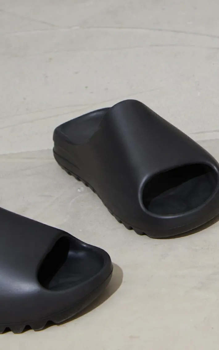 Every needs a pair of slides and we are loving these. Featuring a black rubber material with a ribbed sole design, we are obsessed. Complete the look with your off-duty outfit of the day.