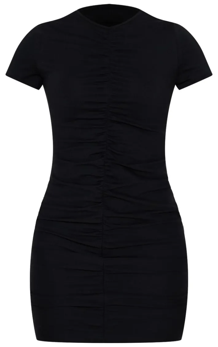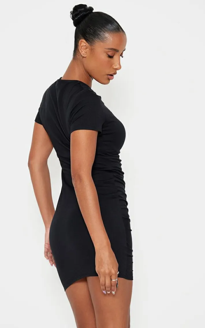 This t-shirt dress is the perfect addition to your wardrobe this season. Featuring a black material, ruched front detailing and a figure-flattering fit, team this with a pair of chunky boots for a look that everyone will be loving.