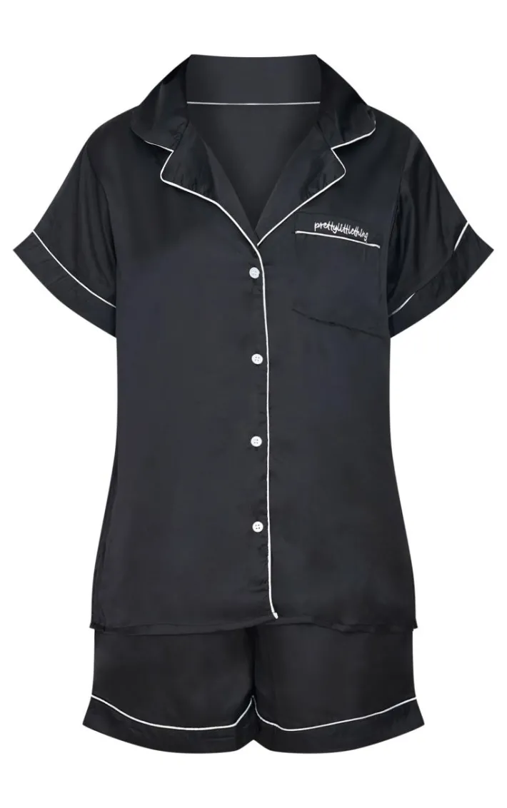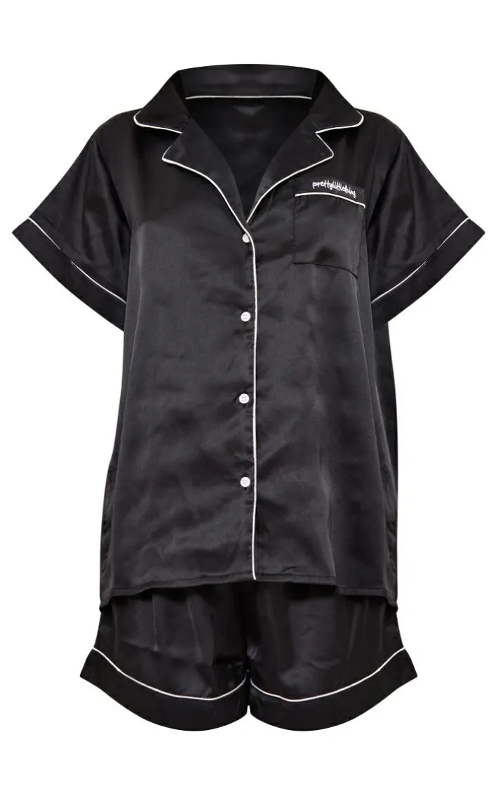 You are sure to be feeling your best self with this black satin contrast piping short PJ set. This set includes a short sleeve shirt and matching shorts, both in a black satin material with a contrast piping detail and a comfyfit, we are obsessed. Wear with minimal accessories and fluffy slippers to finish.