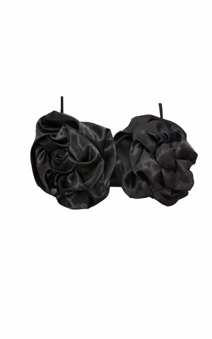 Turn heads for all the right reasons with this black satin oversized applique flower bralet. Made from a black satin material with oversized applique flower details, how could you say no? This bralet is sure to steal all the stares this weekend and bring all the glam vibes to your look. Team with a black maxi skirt, bold hue heels, and gold accessories for a look that everyone will love.