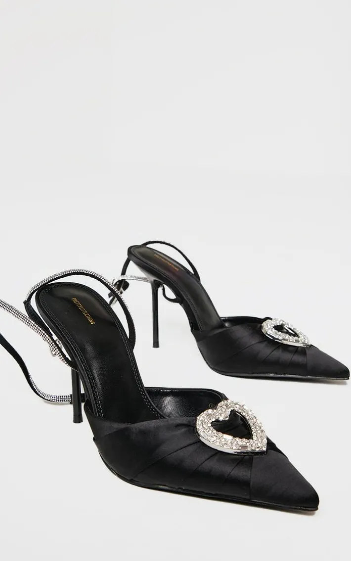 These black satin point toe diamante heart court heels are the perfect addition to any outfit. Brought to you in a black satin material with a point toe design and a diamante heart detail add a touch of luxe like no other. Pair these heels with your fave look to turn heads.