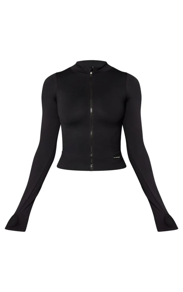 Hit refresh on your activewear collection with this jacket. Featuring a black seamless ribbed material, long sleeves and a zip fastening, we’re obsessed. Team this jacket with matching gym leggings for the perfect workout look.