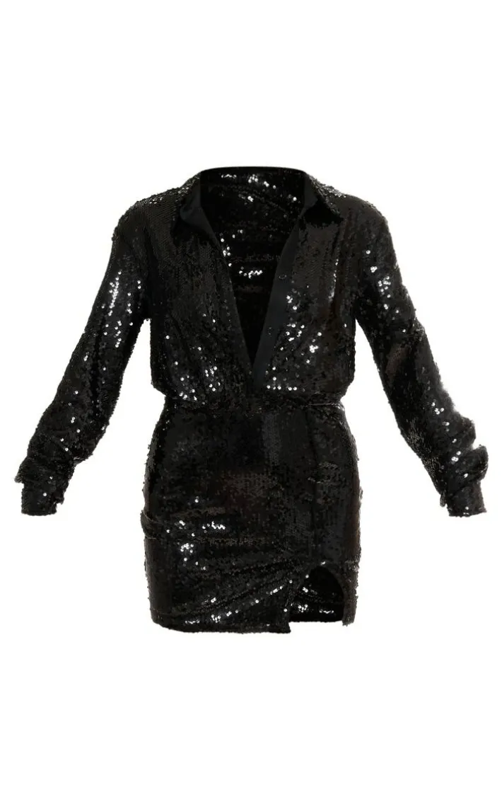 When the dress code calls for glam, look no further than this black sequin fitted shirt dress. Brought to you in a black sequin material with a fitted shirt design, how can you not be obsessed? This fitted shirt dress is here to solve all of your weekend wardrobe dilemmas. Style with your highest heels and luxe accessories for a look that will have eyes on you all night long.