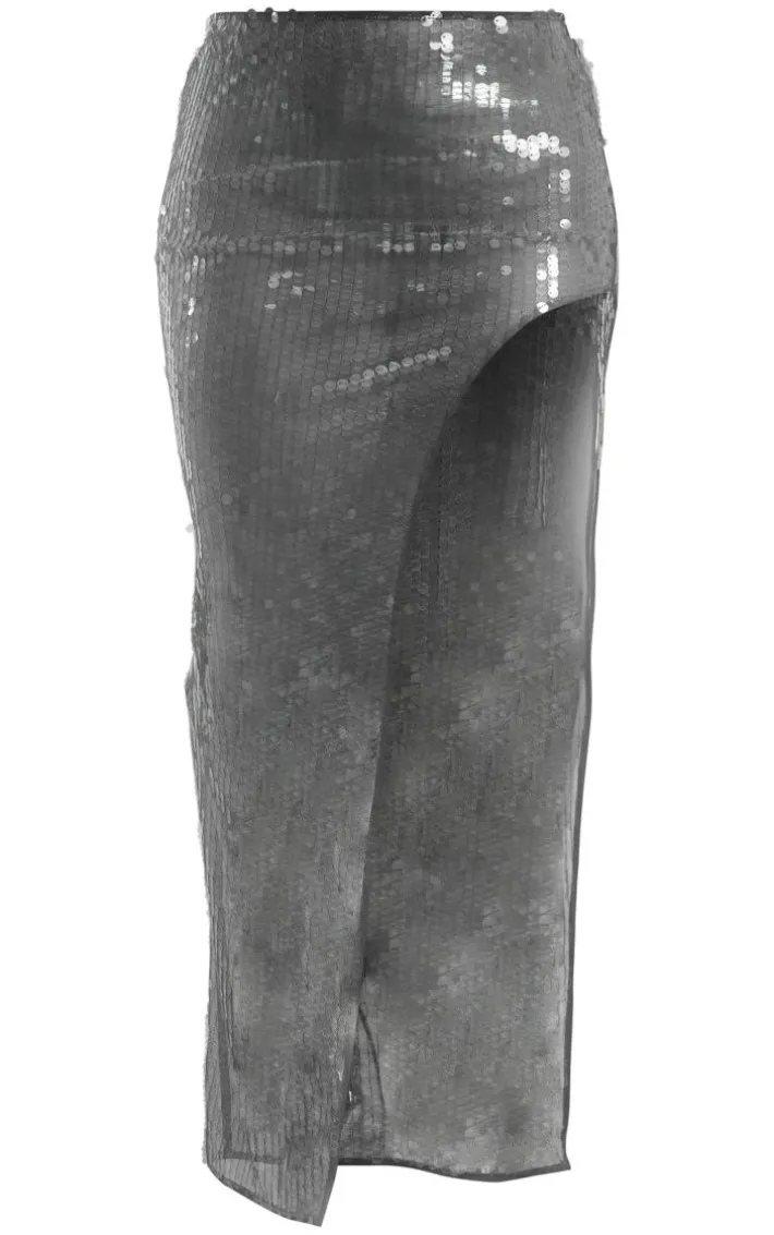 Look all kinds of glam in this black sheer sequin high thigh split maxi skirt. Brought to you in a black hue sheer material with a thigh high split design, sequin detailing for that extra touch of luxe, how can you not fall in love? Style this maxi skirt with a bandeau top, statement heeled boots and accessories for a weekend-worthy look to be remembered.