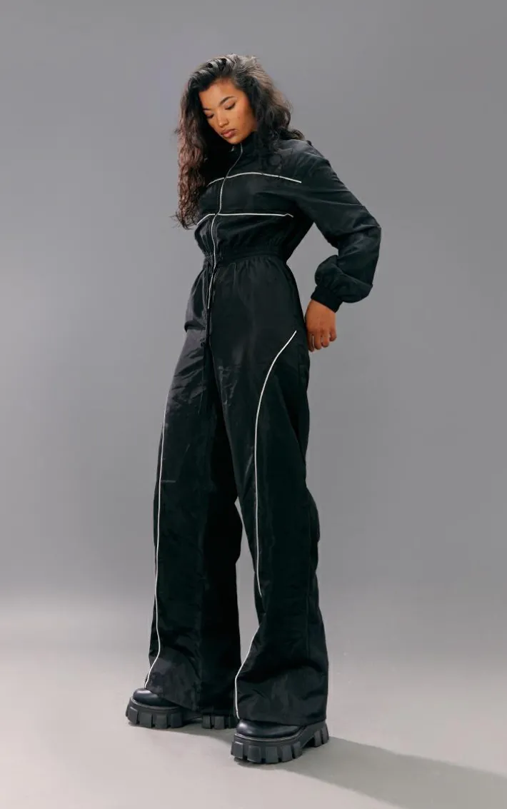 Add a little edge to your new season wardrobe with this black shell panelling zip detail jumpsuit, you’re sure to have heads turning for all the right reasons. Made using a black shell material with a panelled design and a zip detail, everyone will be asking about this jumpsuit. Team this shell jumpsuit with chunky boots and your fave accessories for a look that will bring all the attitude.